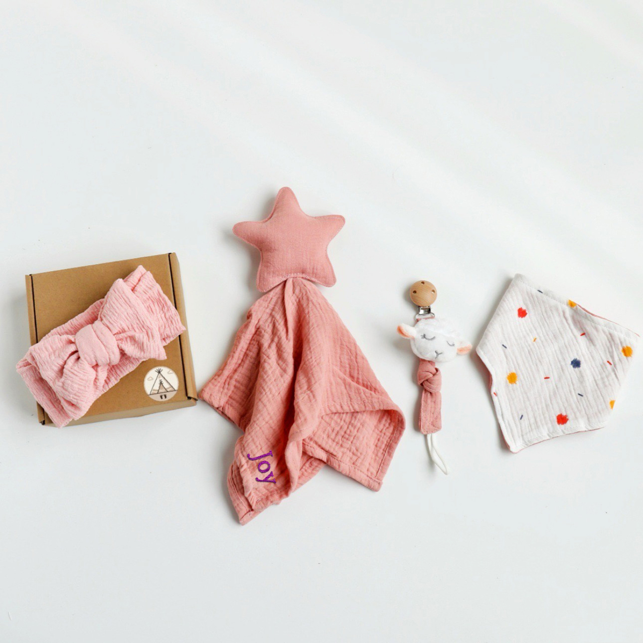 A cuddly muslin companion (star) — designed for snuggles, sleep, and sensory comfort.