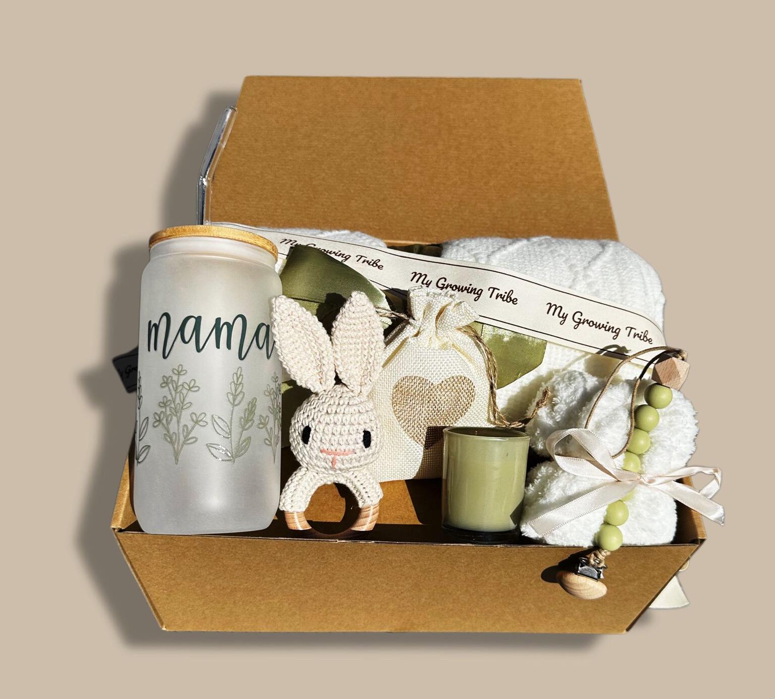 The Green Maxi Box captures the essence of thoughtful gifting — blending comfort, calm, and natural tones with meaningful details. Curated to celebrate both mama and baby, it includes cozy textures, playful companions, and a soothing candle that makes every moment feel special.