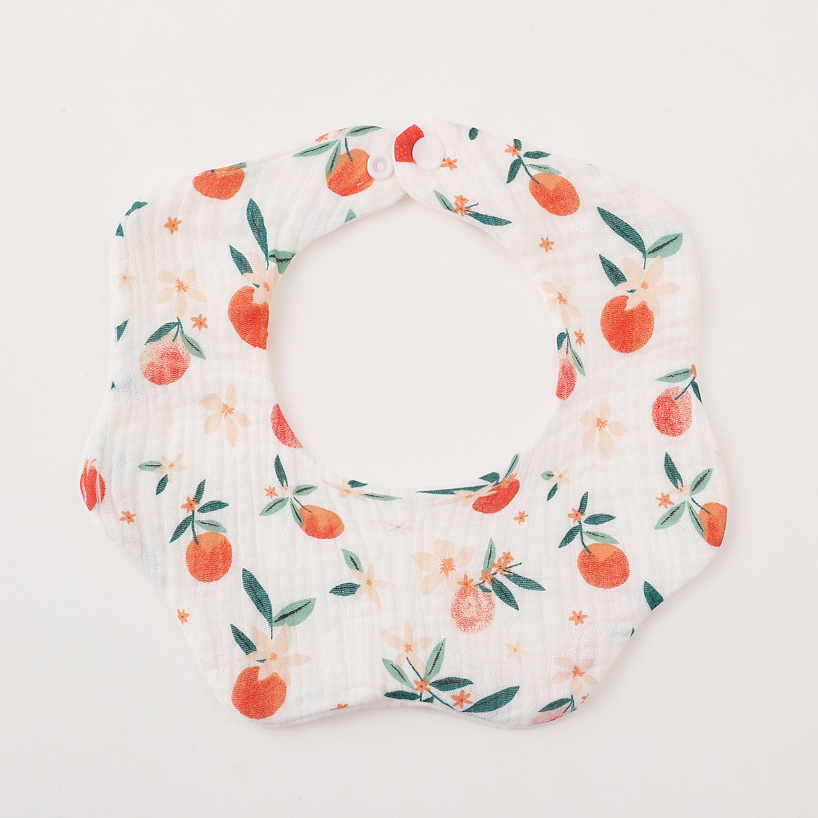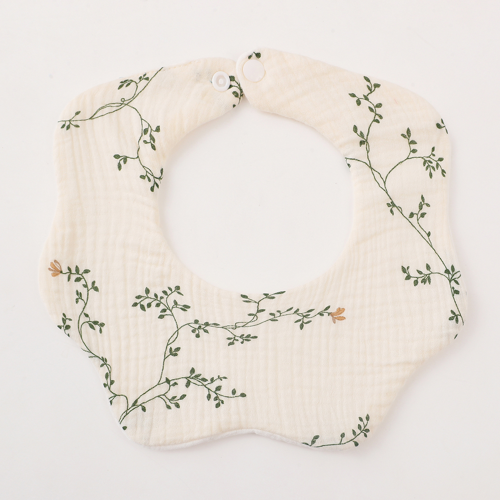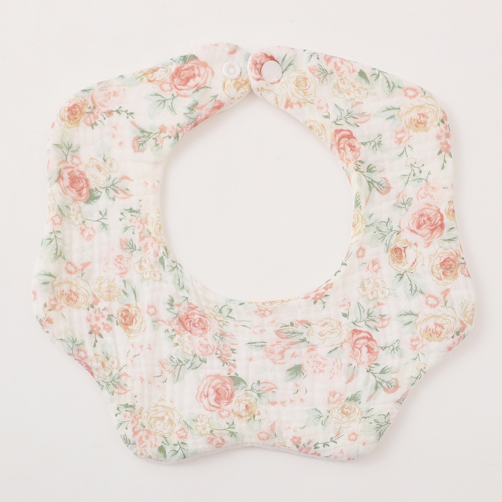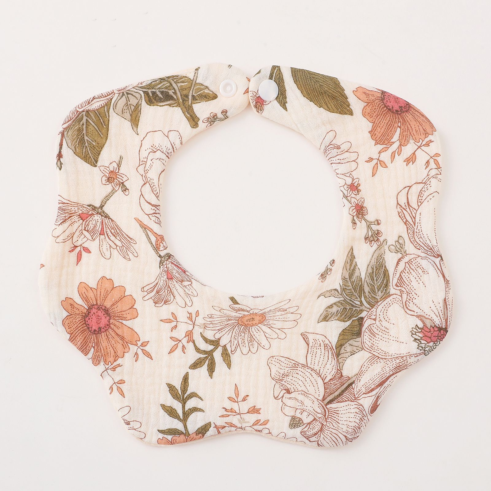 Meet our beautifully soft muslin bibs — thoughtfully designed to keep little ones comfy and dry, while adding a sweet splash of personality to any outfit. Made from breathable double-layered cotton muslin and shaped in our signature scalloped silhouette, each bib features a unique, nature-inspired print that captures the whimsy of babyhood.
