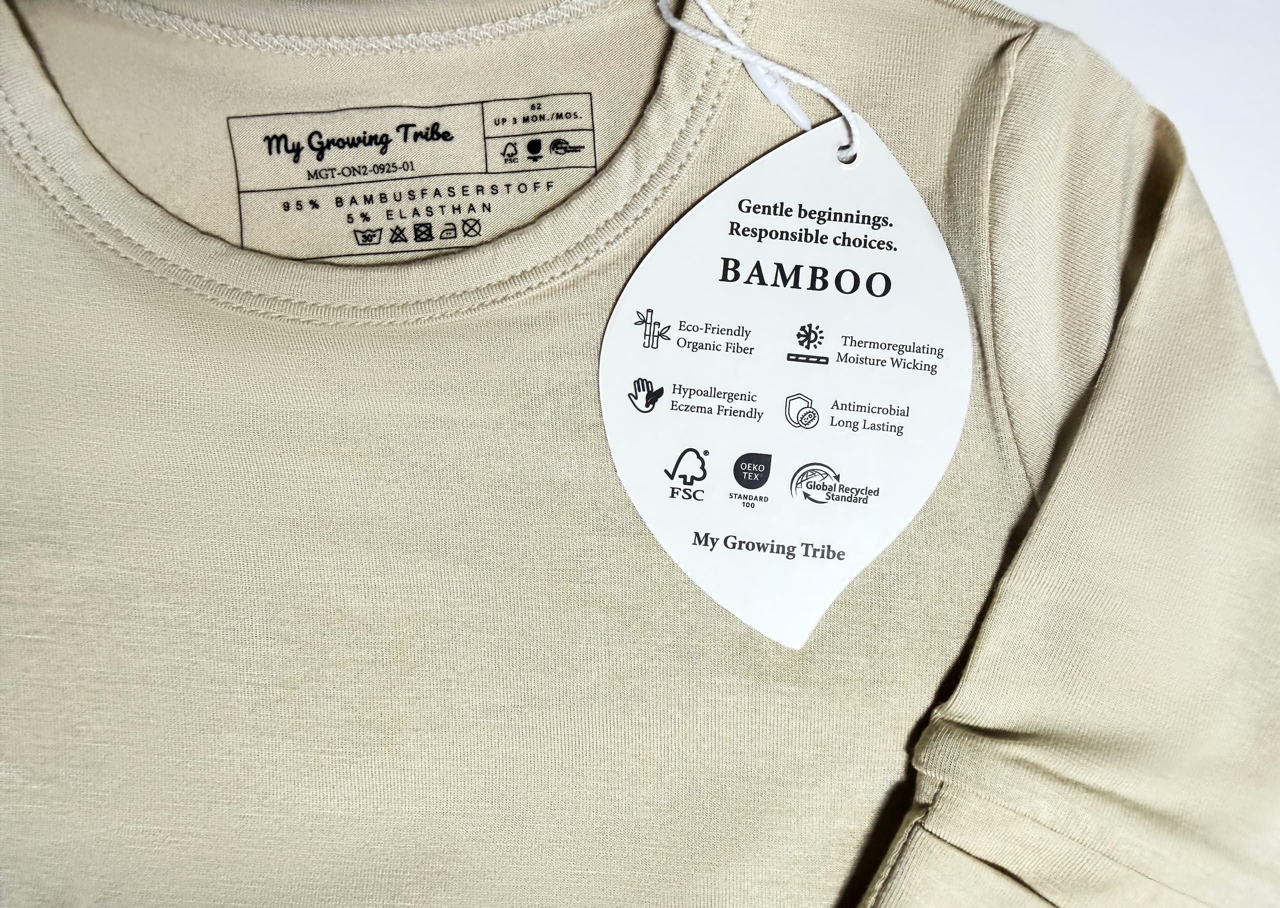 Crafted from OEKO-TEX®️ certified bamboo fabric, the material meets the highest standards for skin safety and purity. Incredibly soft and naturally breathable, bamboo is known for its temperature-regulating properties, making this romper an ideal choice for delicate skin and changing seasons.